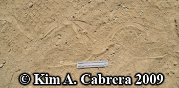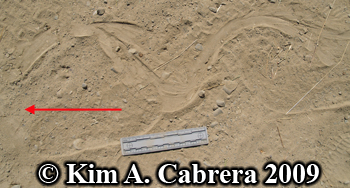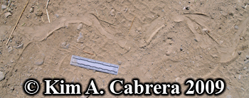 Gopher snake track showing the bends that the snakes makes to propel itself forward |