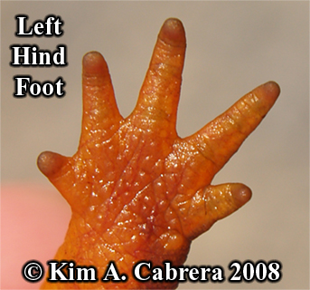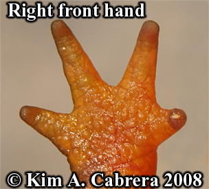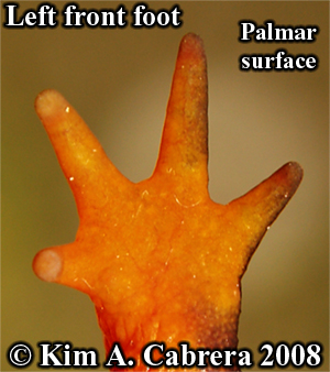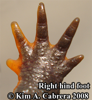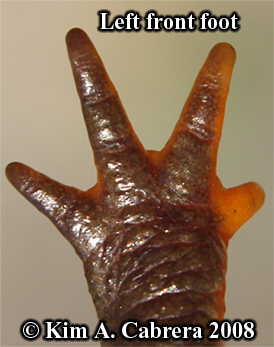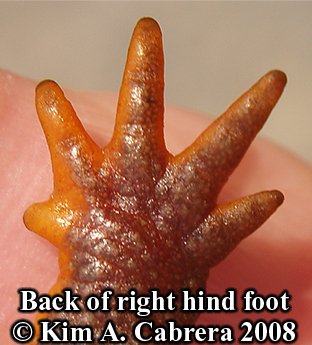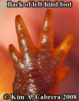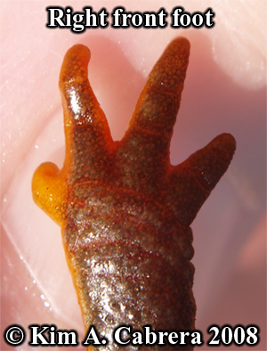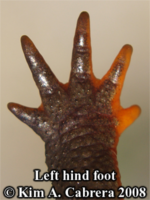 Back of the left front foot (or hand) of another rough-skinned newt. |