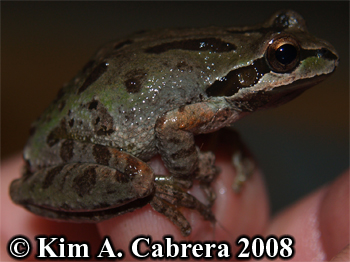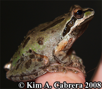 Click to hear the treefrogs croak. These were recorded along the south fork of the Eel River in Humboldt County, California on March 5, 2000. |